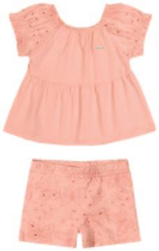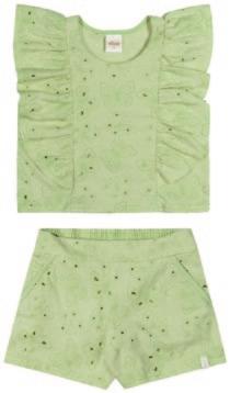 Conjunto com Blusa em Cotton Leve e Shorts em Meia Malha Trabalhada