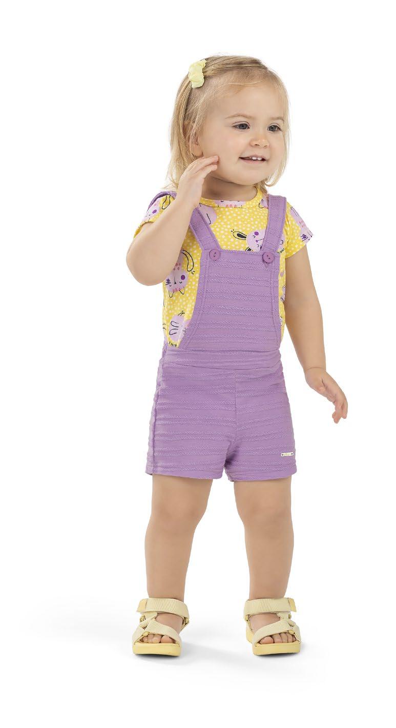 Conjunto com Blusa em Meia Malha e Jardineira em Meia Malha Trabalhada