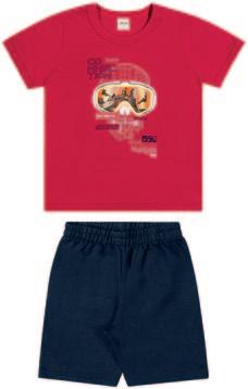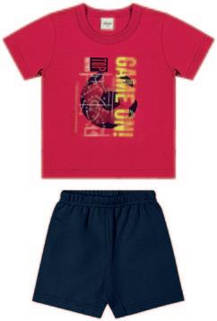 Conjunto: Camiseta sin Mangas en Tejido de Punto Mezcla Colorado y Bermuda en Moletom