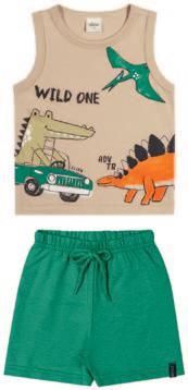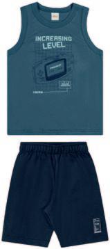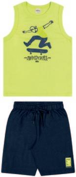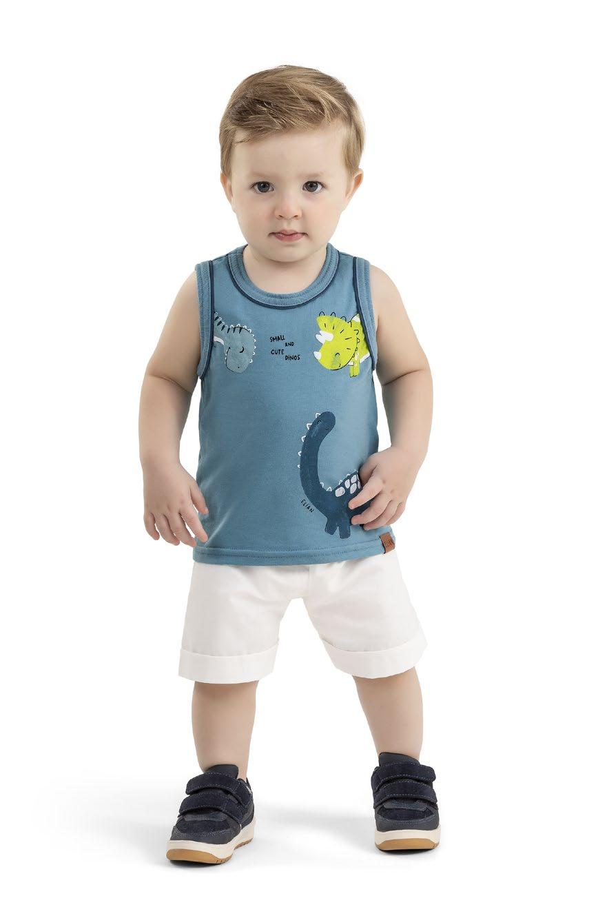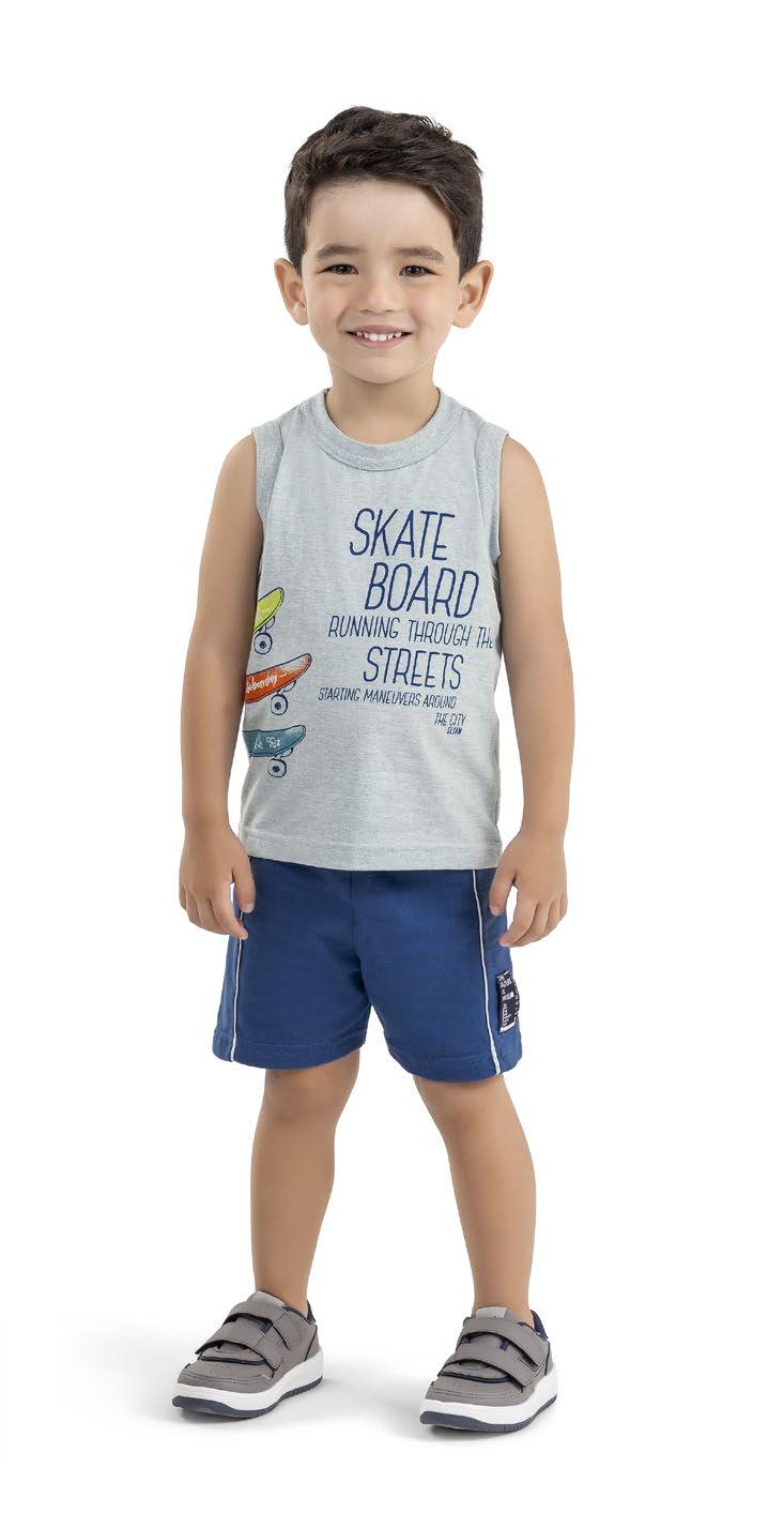 Conjunto com Regata em Meia Malha Penteada e Bermuda em Moletom Botonê