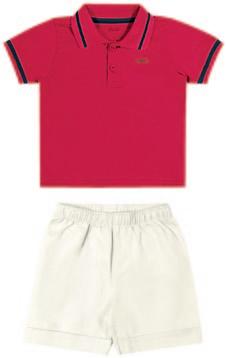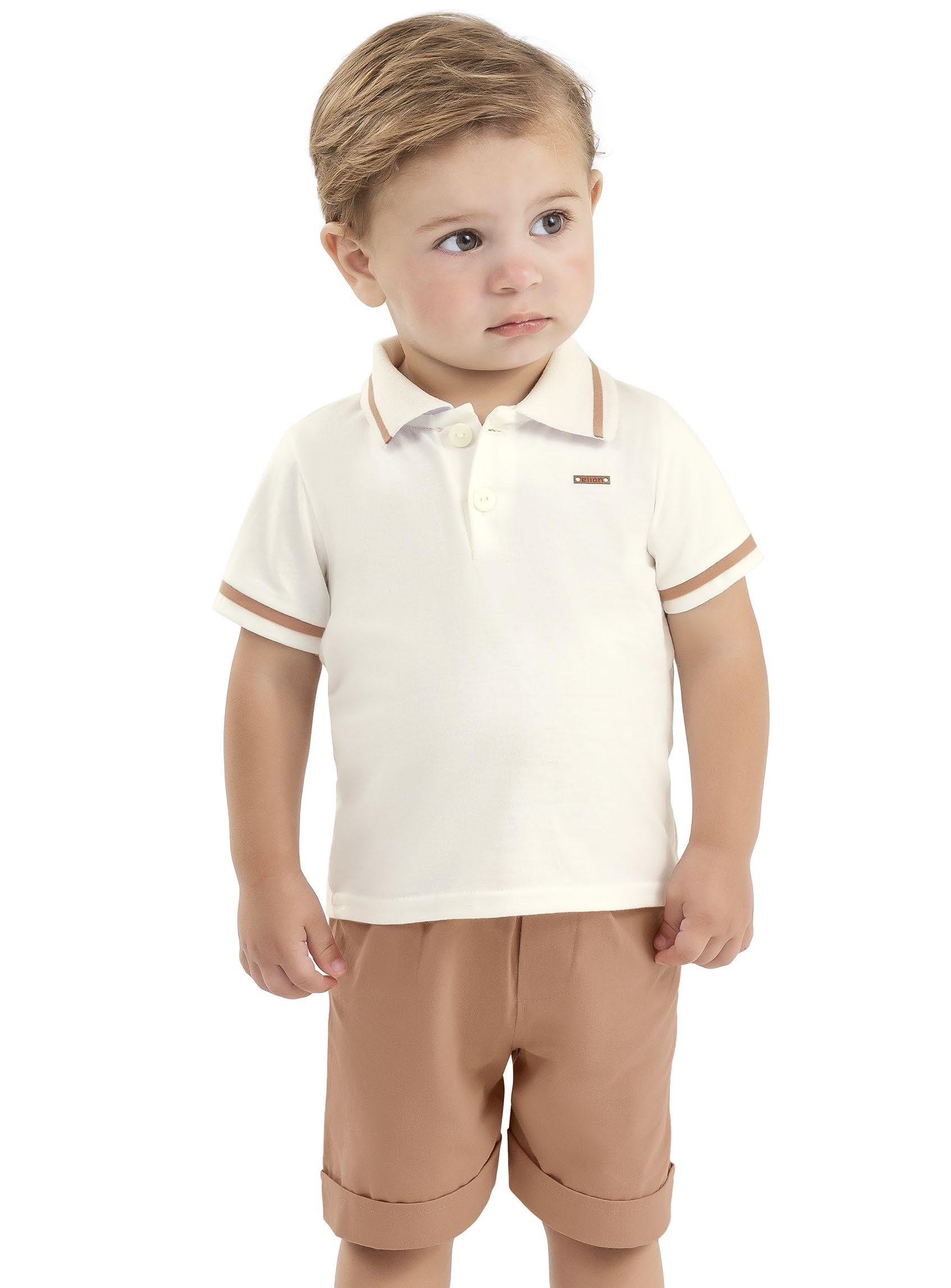Conjunto com Camisa Polo em Meia Malha Penteada e Bermuda em Moletom Botonê