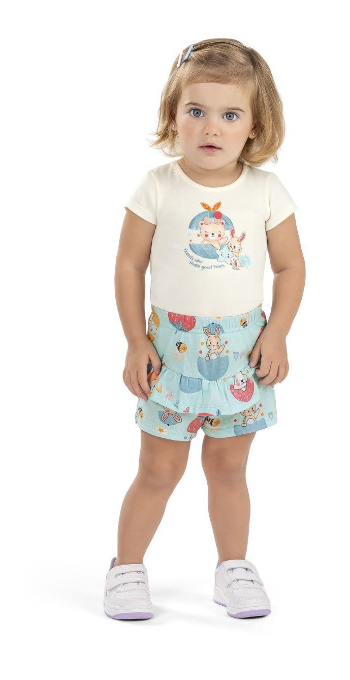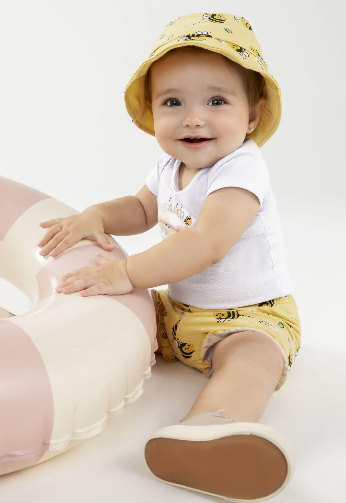 Kit com Body, Chapéu e Shorts em Cotton Leve