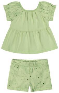 Conjunto: Blusa en Cotton Ligero y Shorts en Tejido de Punto Trabajado
