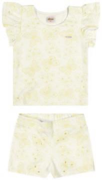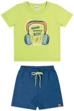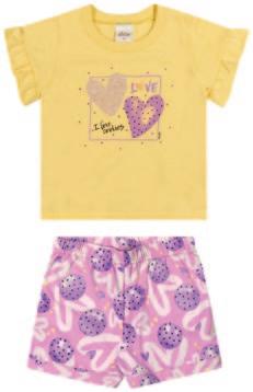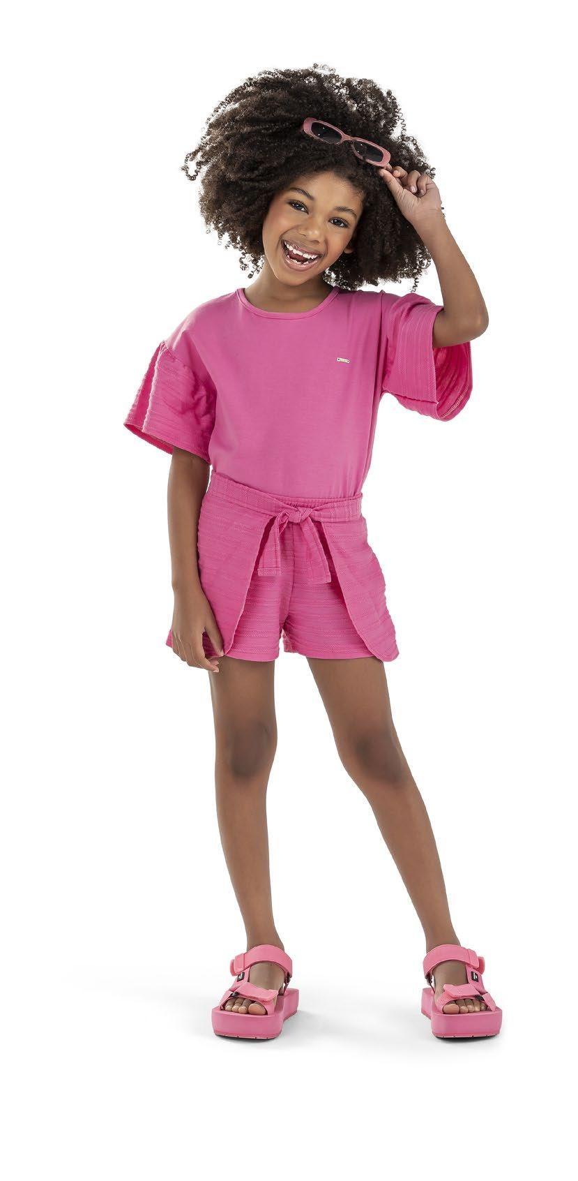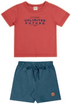 Conjunto com Camiseta em Meia Malha Trabalhada e Bermuda em Moletom sem Felpa