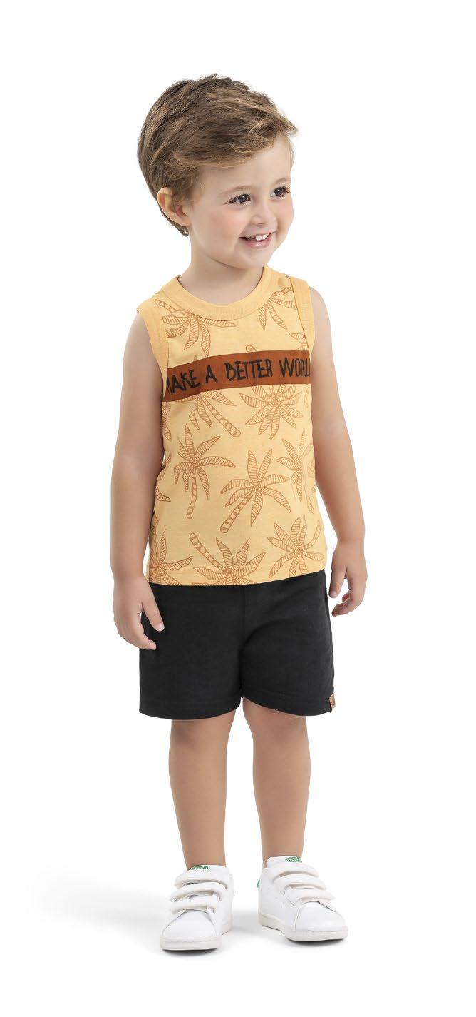Conjunto: Camisa sin mangas en Tejido de Punto Flamê y Bermuda en Moletom sin felpa