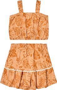 Conjunto com Blusa em Cotton Leve e Saia em Moletom Eco Linho