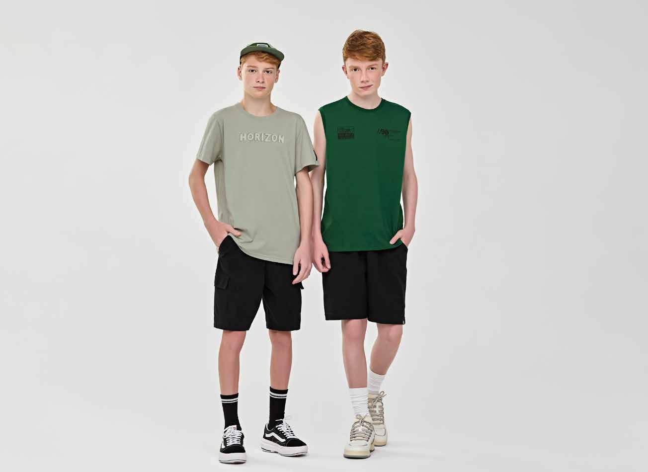 Set: Jersey T-shirt with Double-Layered French Terry Bermuda Conjunto: Camiseta de en Tejido de Punto con Pantalón Corto de Punto Doble Tam.: 10 - 12 - 14 - 16 - 18 Regata em Meia Malha