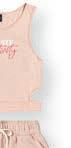 Conjunto com Regata em Meia Malha e Bermuda em Moletom Texturizado Estampado Set with Jersey Tank Top and Texturized Print Cotton Fleece Shorts Conjunto con Regata en Tejido de Punto y Bermuda en Moletón Texturizado Estampado