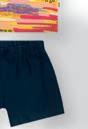 O estilo urbano é o queridinho dos meninos! O conjunto com camiseta, bermuda e colete ganha destaque com cores vibrantes e estampa divertida.