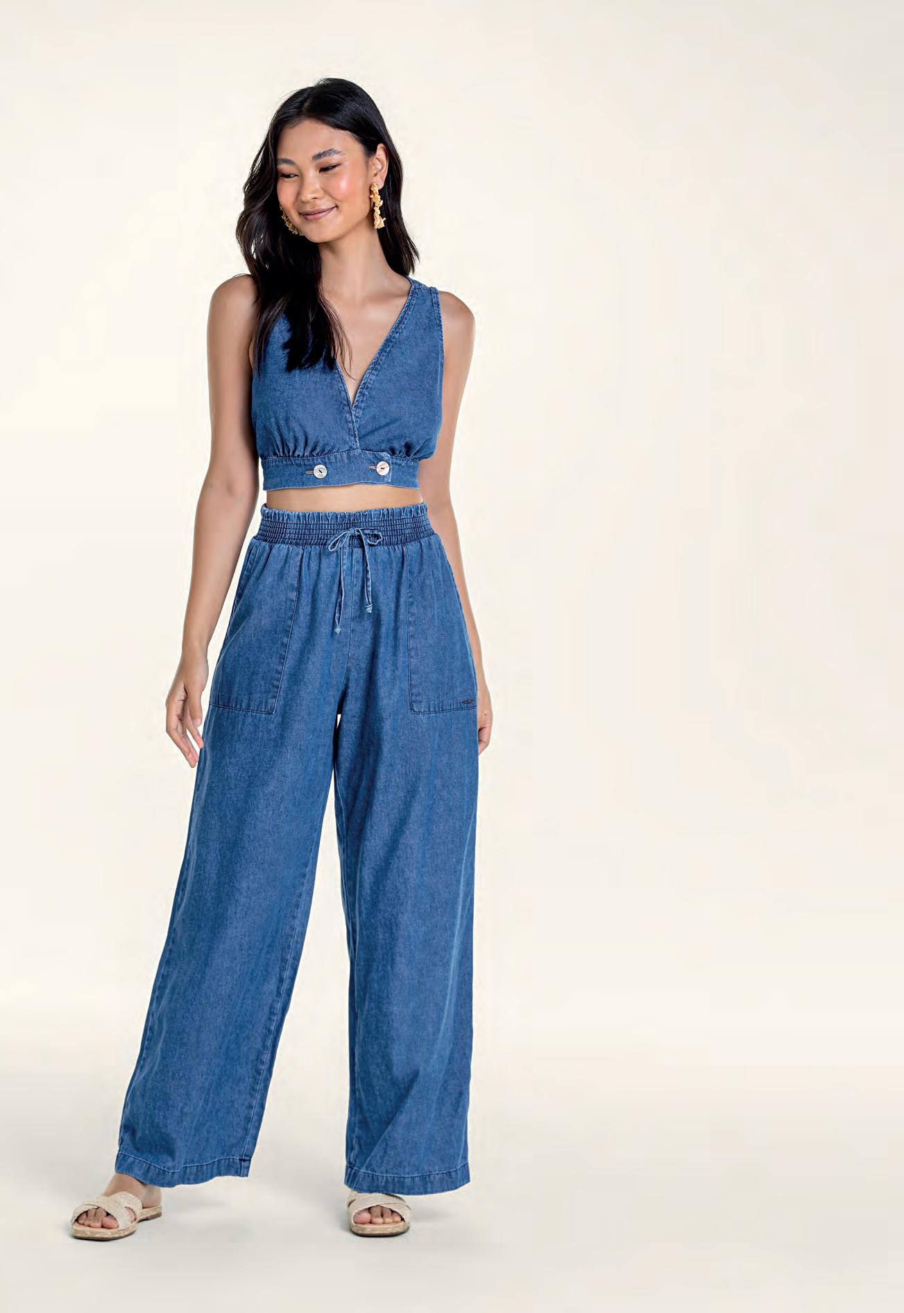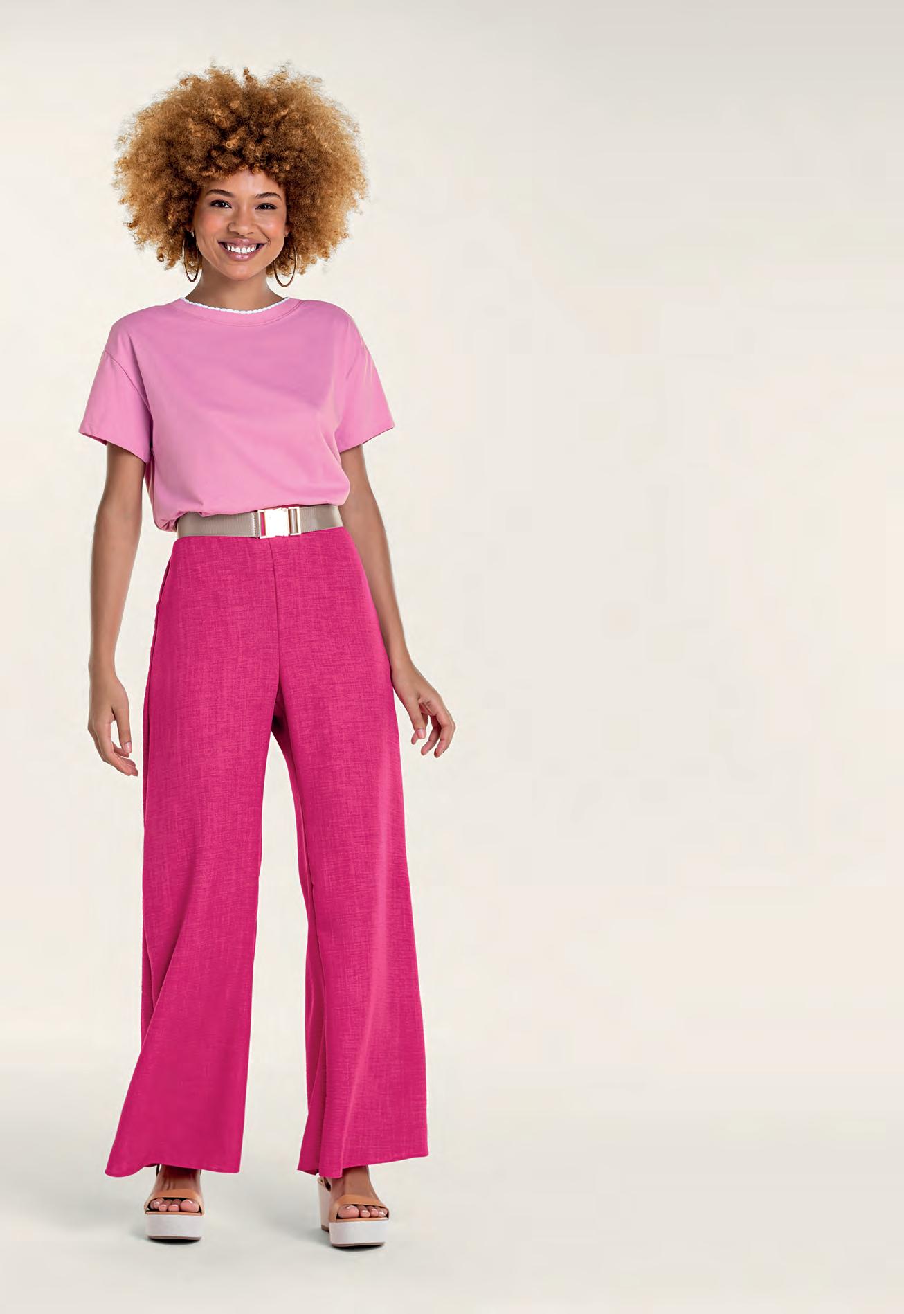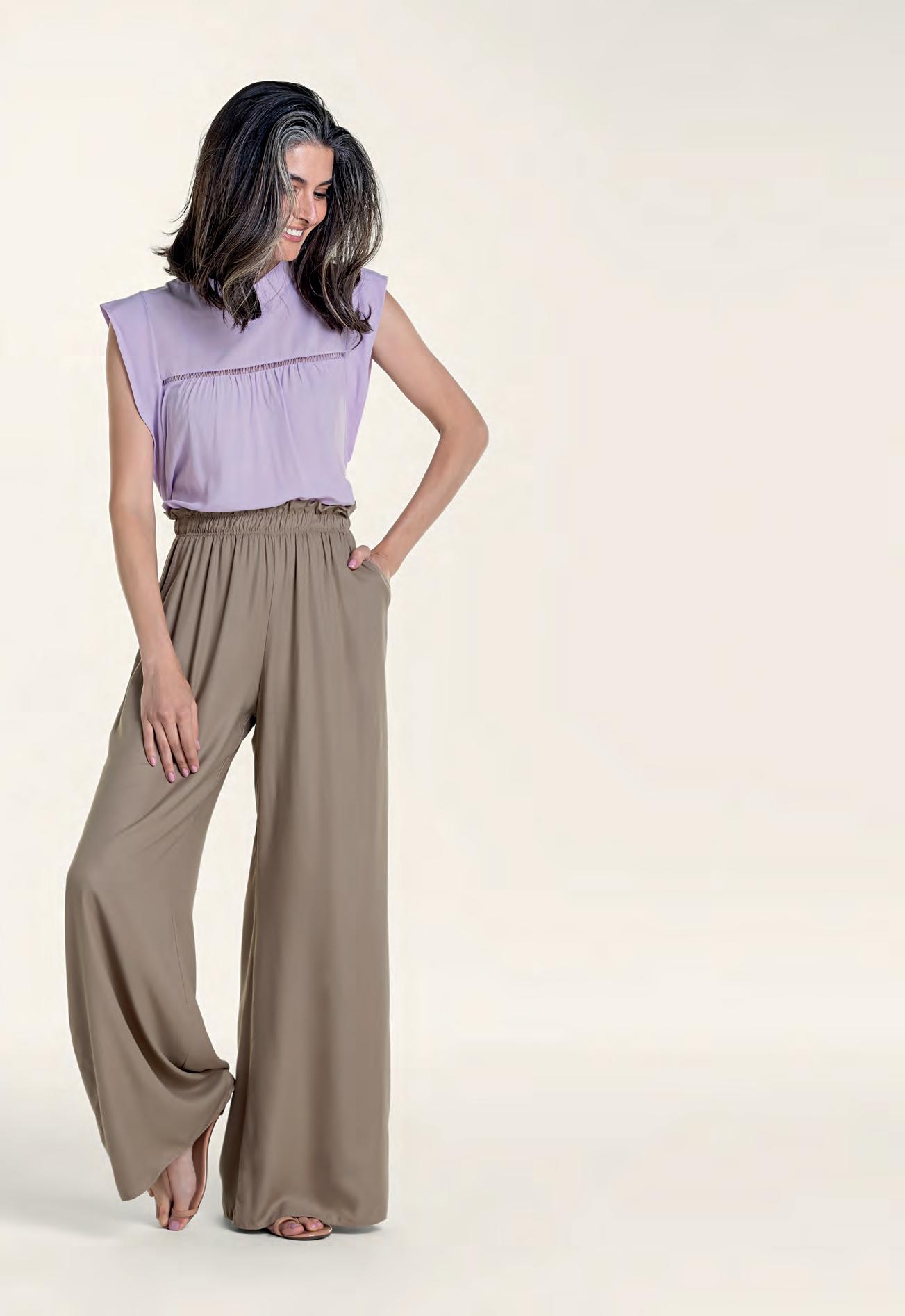 Calça em Tecido Creponado Creponed Fabric Pants Pantalón en Tejido Plano Creponado