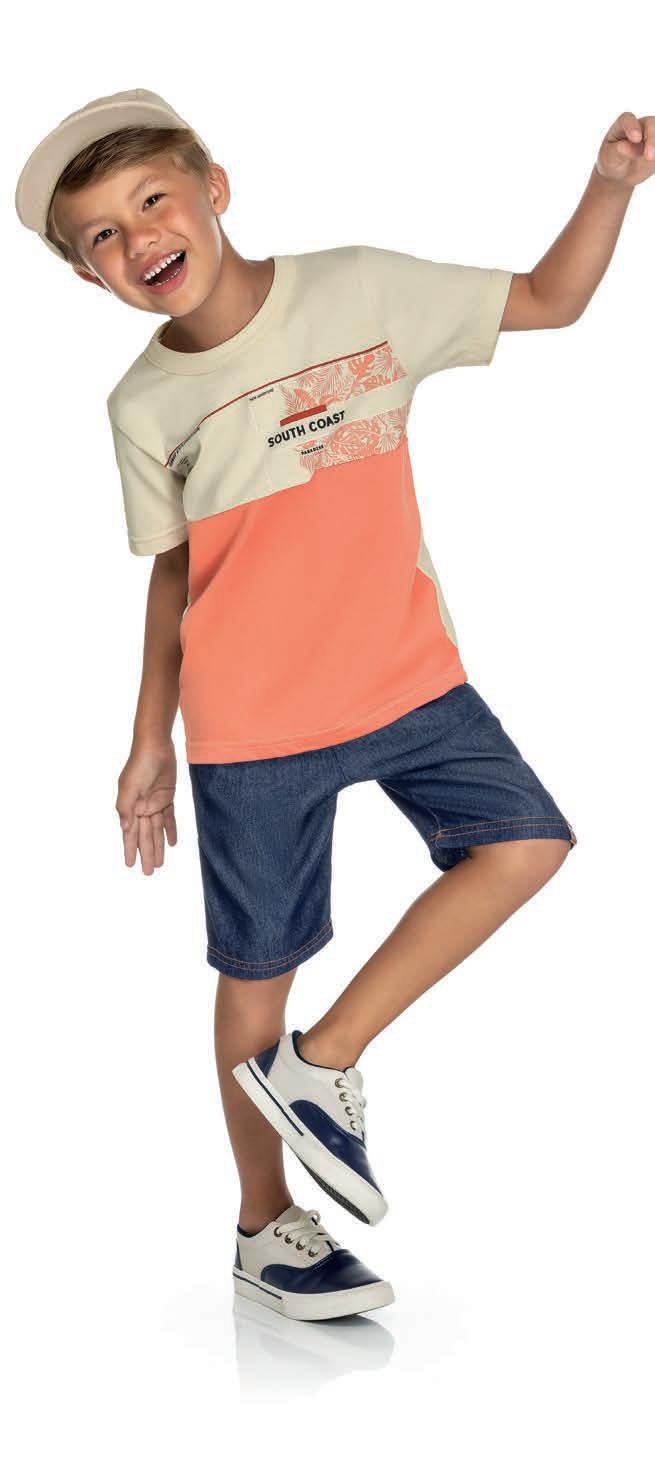 Conjunto com Camiseta em Meia Malha e Bermuda em Moletom Dublado Set with Shirt in Jersey and Bermuda in Double French Terry Conjunto con Camiseta en Tejido de Punto y Bermuda en Moletón Doblado