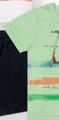 Set with Shirt in Jersey and Bermuda in Ribbed French Terry and French Terry Conjunto con Camiseta en Tejido de Punto y Bermuda en Moletón Acanalado y Moletón Sin Felpa