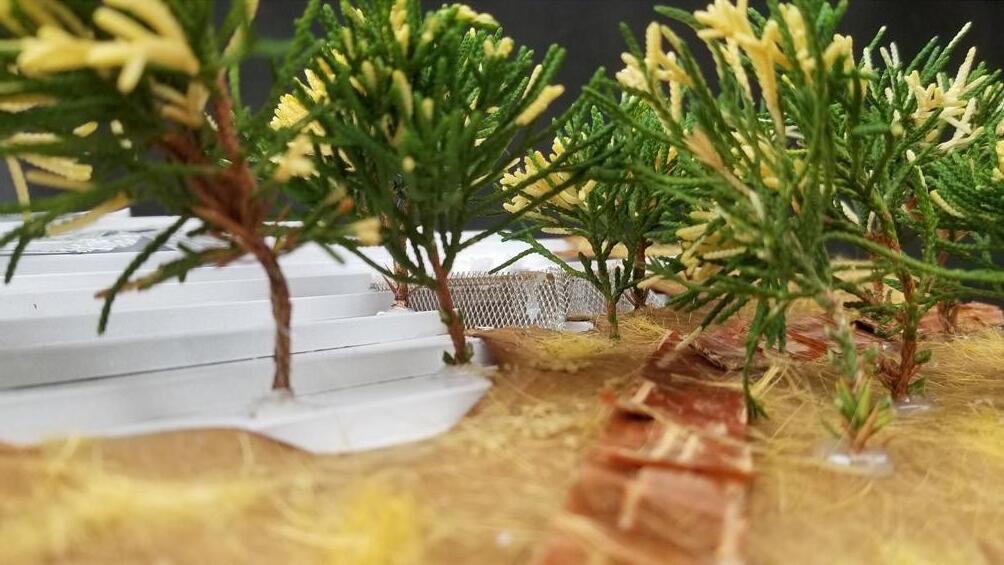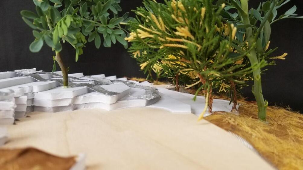 Aroussiak GabrielianOver the pandemic the class created plaster casts of an area near us to map the topography which could then be transformed into landscapes digitally through renders and other drawing methods.