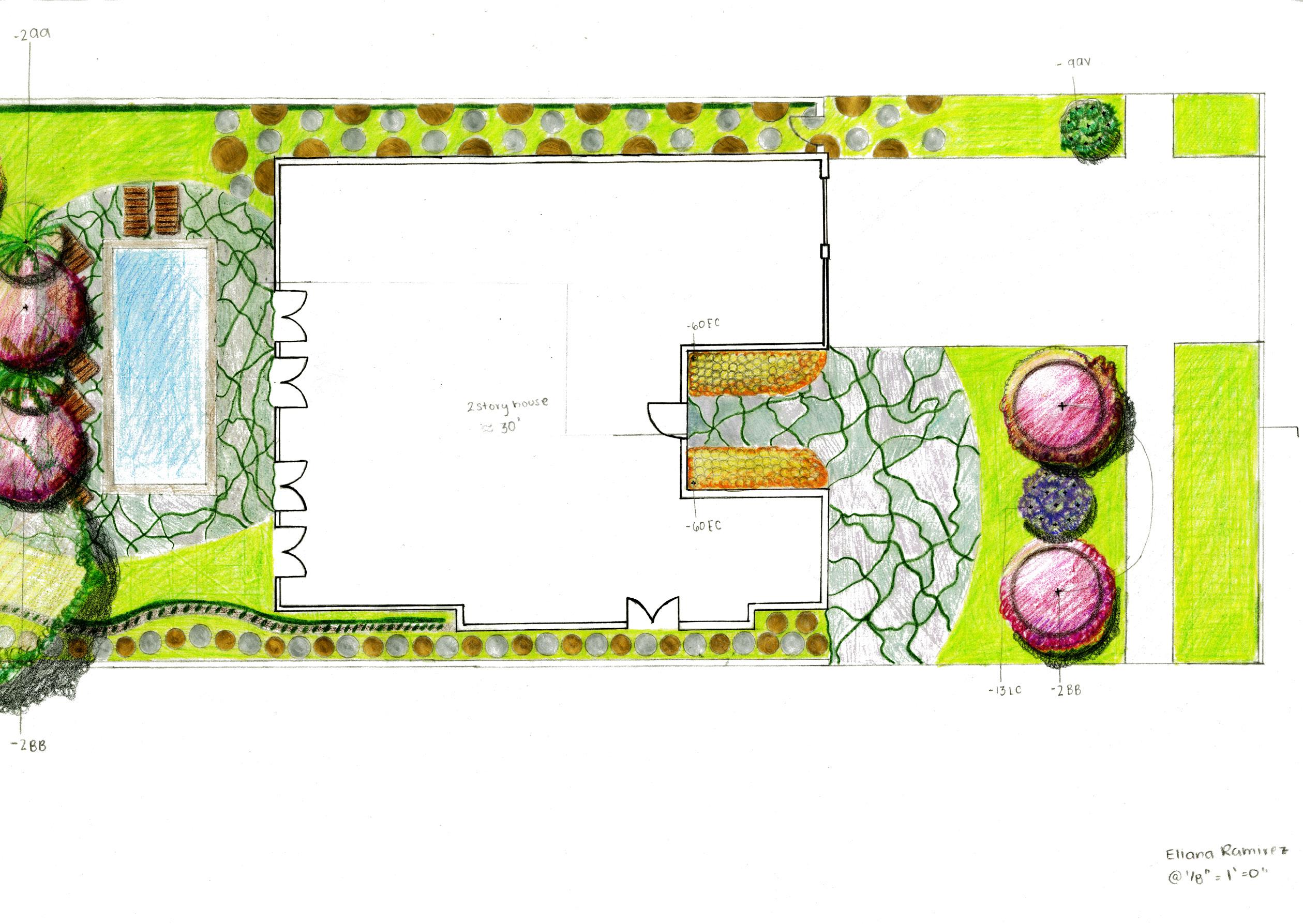 One of the projects the classed worked on was a hand drawn planting plan for a home loacted in Santa Monica to deepen the understanding of vegetation and strict parameters for viable landscaping.