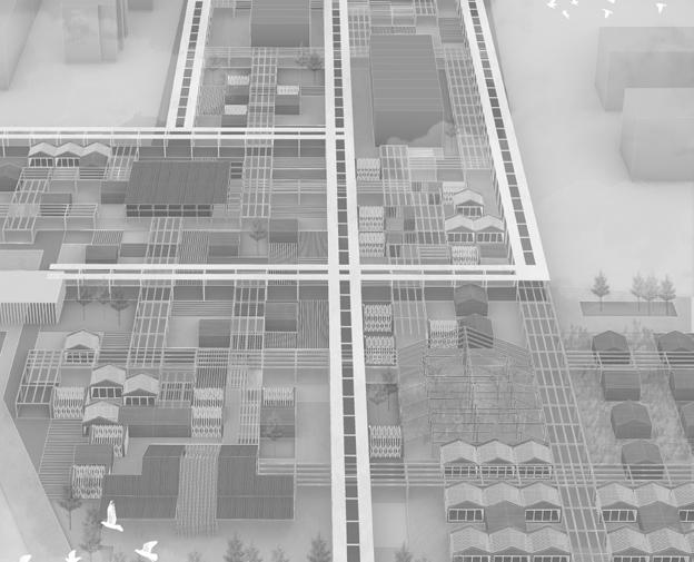 The design utilizes lines, columns, and roofs to guide movement and mutual support. It is constantly expanding in response to the demand, creating a space that meets the needs of a diverse community. The site incorporates moveable, foldable modules to enhance flexibility and allow the architecture to adapt dynamically to changes in population. This architectural concept creates a safe and resilient space. It promotes community growth and encourages interaction, mutual support, and a sense of belonging.