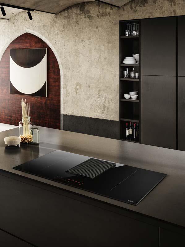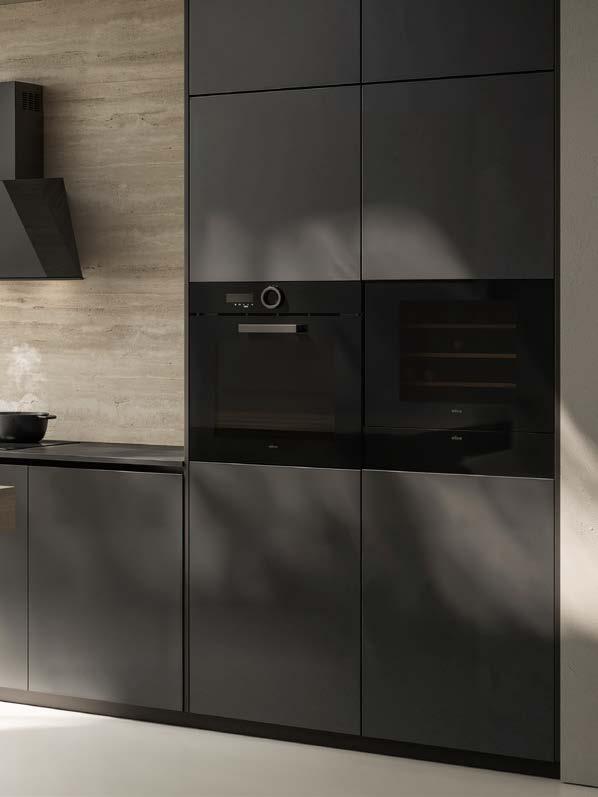 The entire range is distinguished by a total black glass look, a linear style and refined details like the compact anodized aluminium handle.