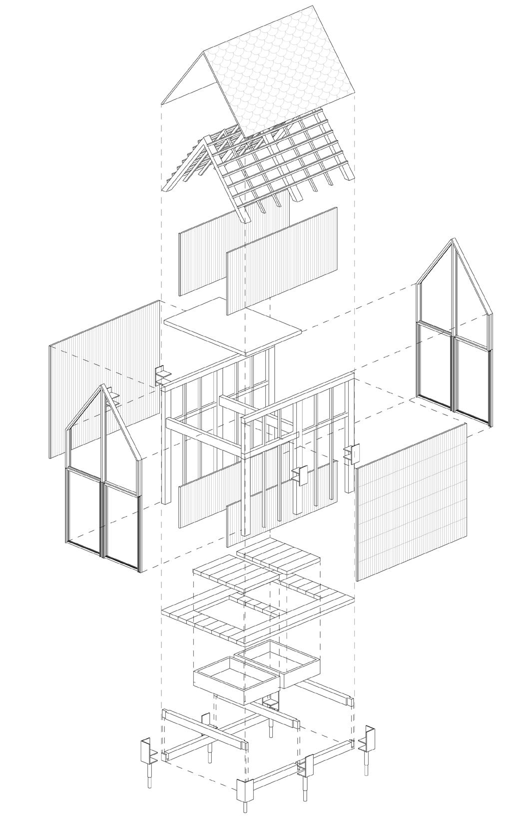 Our aim was to offer an intervention whose monumentality only exists in its scale - for the scale of the fortress is such. The shelters themselves are to be both reminiscent of a fortified village and give meaning to the fortress itself and an homage to the traditional houses of the Aosta Valley. They are designed to be completely movable and detachable when necessary, as well as adjustable for level changes of the terrain. The tower, naturally a closed and introverted space, has been transformed into a library and reading room lit through a zenital opening and connected to the passarella via a southern window opening. The chapel, traditionally a place of commune, has preserved its open spatial properties and used as a dinning hall which together with the tower and the residential units forms the fortress.