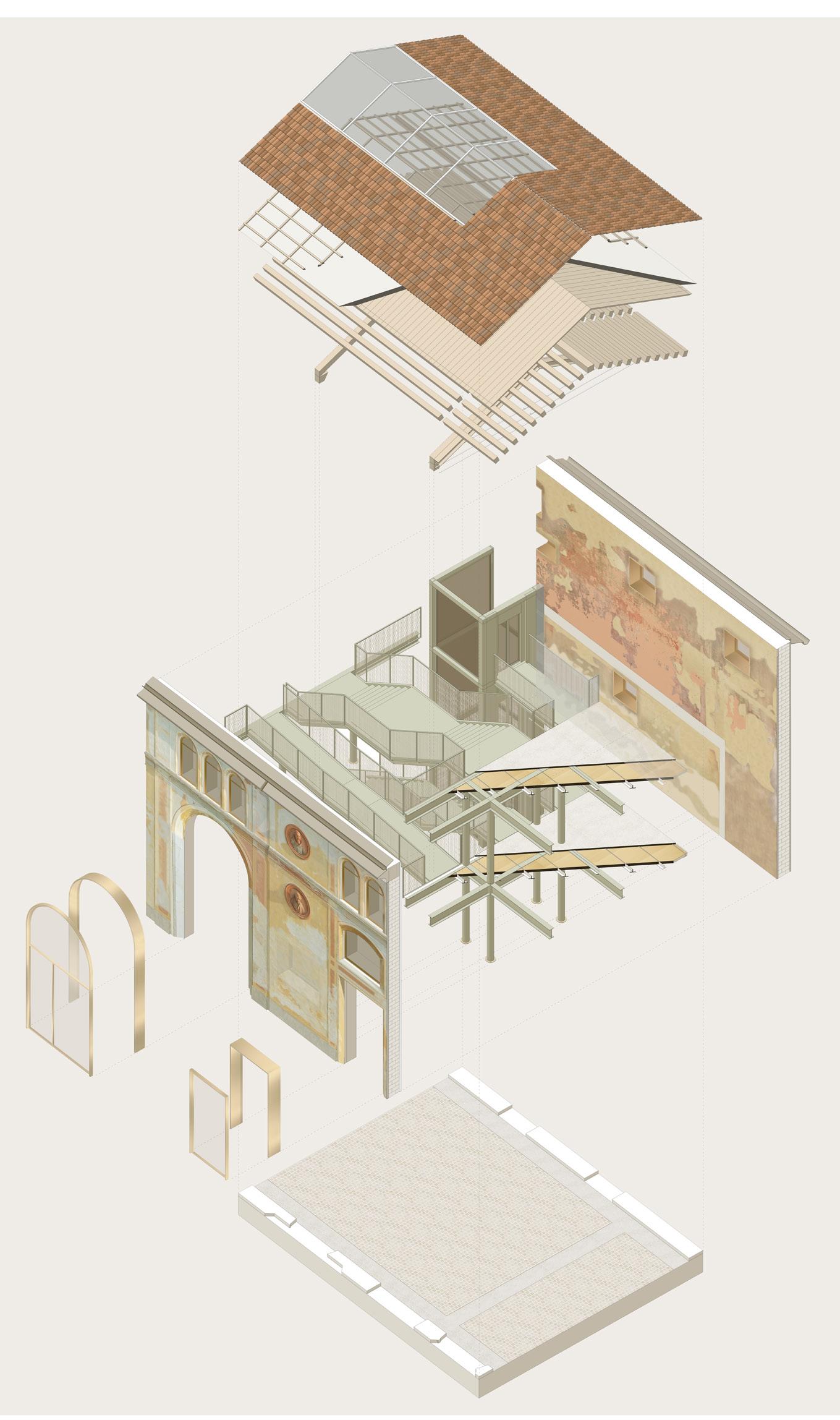 Located in the Veneto region, the town of Schio was once home to Italy’s largest wool factory, Lanerossi, as well as other important social facilities such as a kindergarten, the Jacquard Gardens, and a theatre within the garden, which is the focus of our project. During the 19th and 20th centuries, these buildings played a crucial role in shaping the life and development of Schio, serving as vital hubs for both industry and community. However, in the present day, many of these structures, including the theatre, stand abandoned. The primary objective of this studio is to conduct a thorough historical investigation of the site, analyze the current state of damage to the theatre, identify its structural vulnerabilities, and propose a critical restoration approach that respects its historical significance while adapting it to contemporary needs.