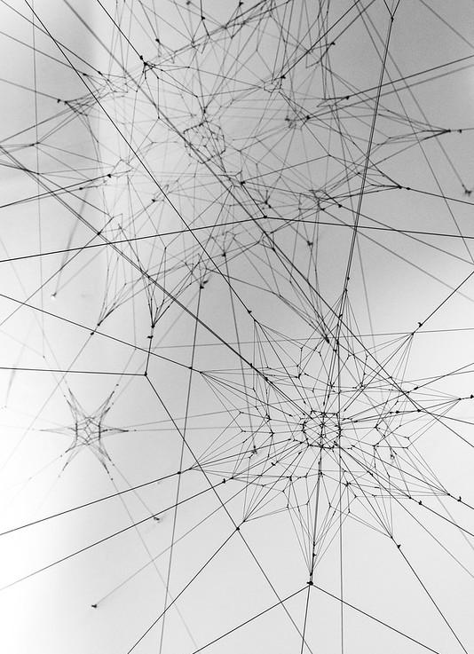 …like Galaxies Forming along Filaments, Like Droplets along the Threads of a Spider’s Web…Activating the Planetarium’s unique staircase gallery through forty-two meters of interwoven threads and spheres that rise through the full height of the building, Cosmic Threads invites visitors to contemplate the inter(dis)connected mysteries of the universe with the multiplicity of living cosmovisions, questioning: what if the overview effect is not only at the edge of space?