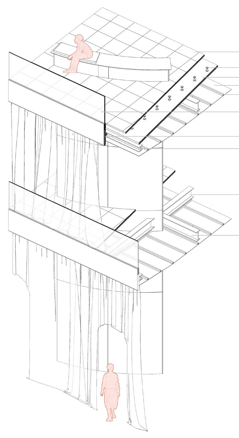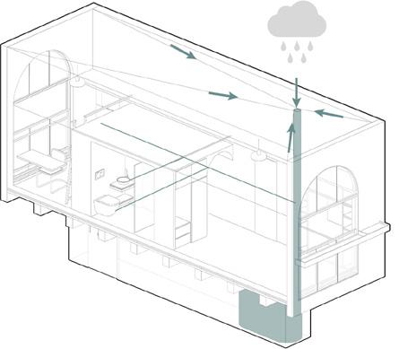 Drawing inspiration from historical Venetian wells, the design reinterprets the historical water management system for efficient rainwater collection. By embracing this approach, the project ensures selfsufficiency and environmental responsibility, echoing the resourceful spirit of Venetian engineering.