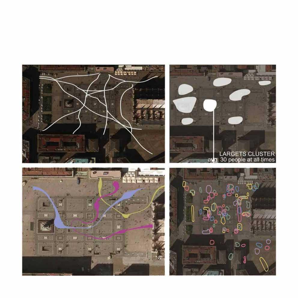Colonization process: starting from the ancor points and the power-outlets, the market spreads in the square