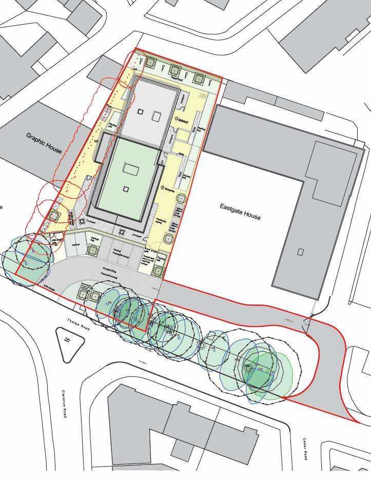 1 - Vertical offsets allow level access, define a higher street front elevation and diminish the impact on the rear of the plot. The frontage of the building is formed in line with the adjacent existing Eastgate House development.