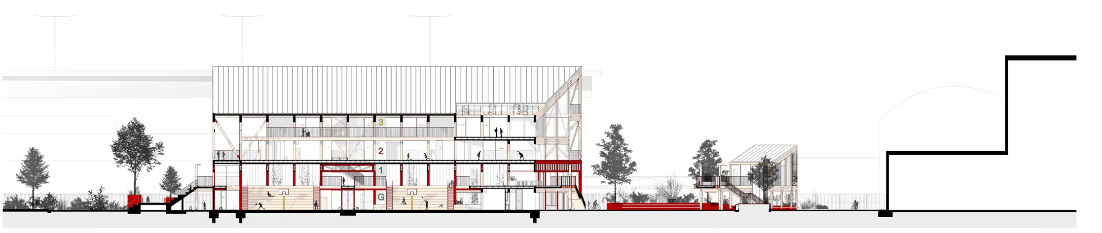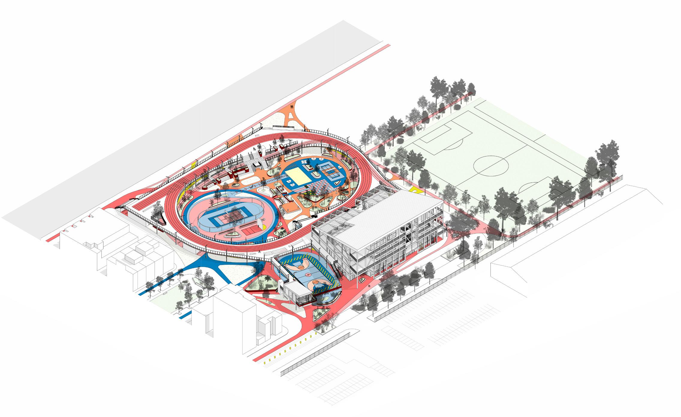 Can architecture in combination with access to open and green space, strategic siting (as well as highlighting), and overlapping of activities encourage increased physical activity amongst Secondary School students in an increasingly privatised urban environment? Given people develop lifelong habits in schools around their friends, and spend around half of their waking hours there during the week, the school setting and context is seen as a critical place to begin to mitigate these troubling trends and promote better lifelong relationships to physical activity (Naylor, P. J., & McKay, A. H., 2009). Can linking this new infrastructure with existing, outdated or underutilised infrastructure, (Greater London Authority 2021, 10) in a pedestrian focused manner, foster increased urban engagement across the suburb? Can increasing green and open space, while responding to the growing social needs of current and future residents create a more livable environment and encourage people to reside in the area for longer? Could a spatially and socially linked Secondary School, that also provides connected shared social amenity for both students and the community foster a greater sense of connection and ownership in a growing suburb that has a reputation for lacking such crucial infrastructure?