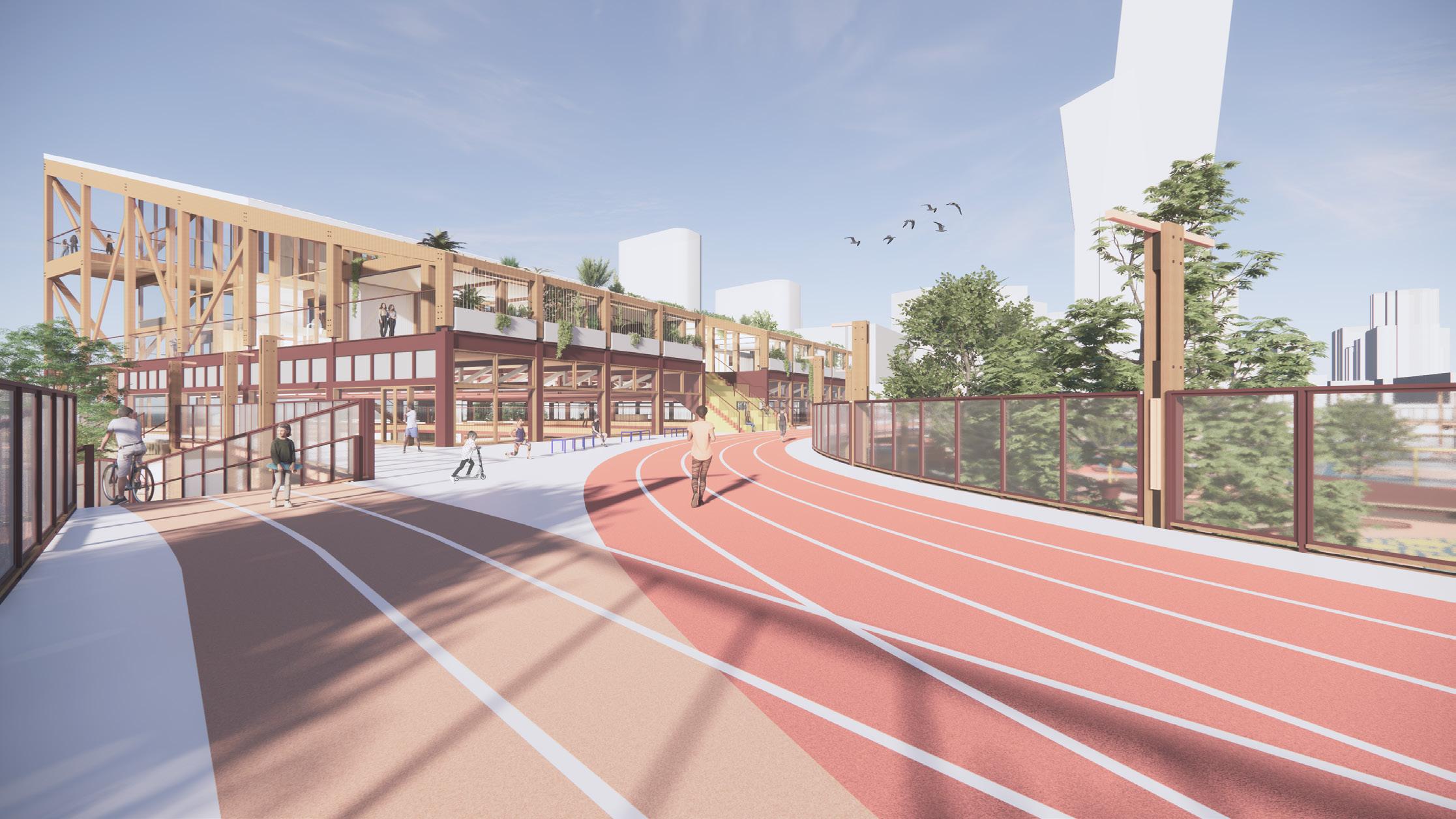 This programmatic focus adds to and integrates with the increasing popularity of sport in the area, and the success of busy new sports facilities nearby. Like many similar contemporary projects it utilises formal and informal sporting and physical activities as a tool for urban regeneration (Cognigni & Vettori, 2020) as well as the promotion of social inclusion. The project aaims to act as a social anchor and link between other programs and sites in the area (Cleveland, B., 2016, 4). It hopes to inspire other new projects to reconsider their impact on the long term social needs of the growing number of people who call the Docklands home.