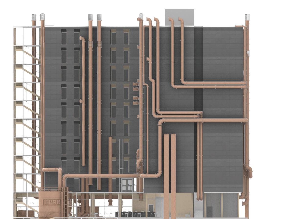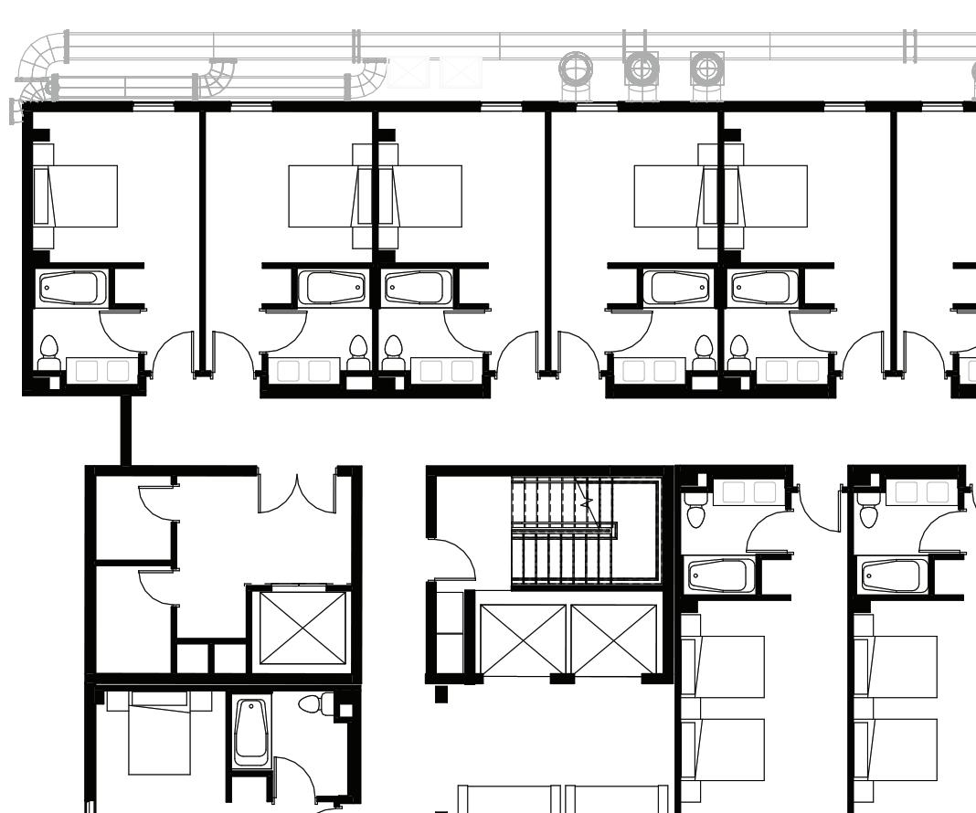 Ventilation from resturant and laundry rooms is directed to the roof.