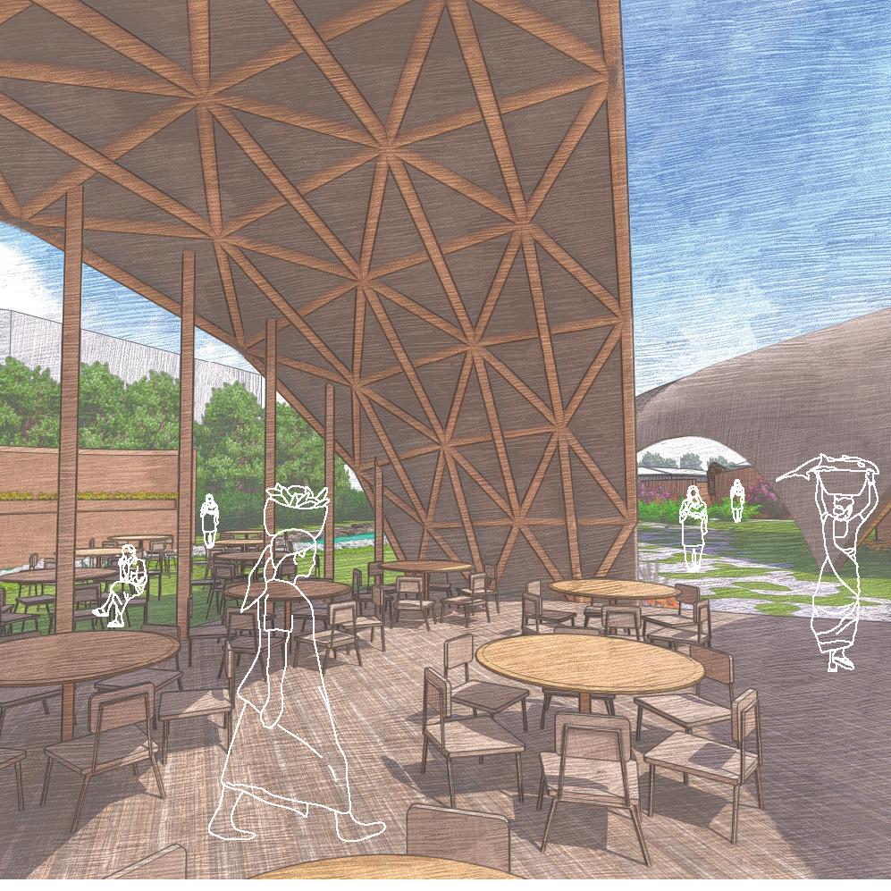 THE USE OF AROMATIC, VIBRANT, AND EDIBLE PLANTS PROVIDE A MULTI-SENSORY EXPERIENCE FOR THE CHILDREN, ALLOWING THEM TO EXPLORE AND APPRECIATE THE NATURAL WORLD AROUND THEM. SEVERAL WATER FEATURES IN AN EFFORT TO PROVIDE A SENSE OF PEACE AND RELAXATION. WE INCORPORATED ELEMENTS OF LOCAL CULTURE SUCH AS MATERIALS USED IN TRADITIONAL ARCHITECTURE. THESE ALSO ADD A SENSE OF FAMILIARITY AND CONNECTION FOR THE CHILDREN, MAKING THEM FEEL MORE AT HOME AND COMFORTABLE IN THEIR SURROUNDINGS.