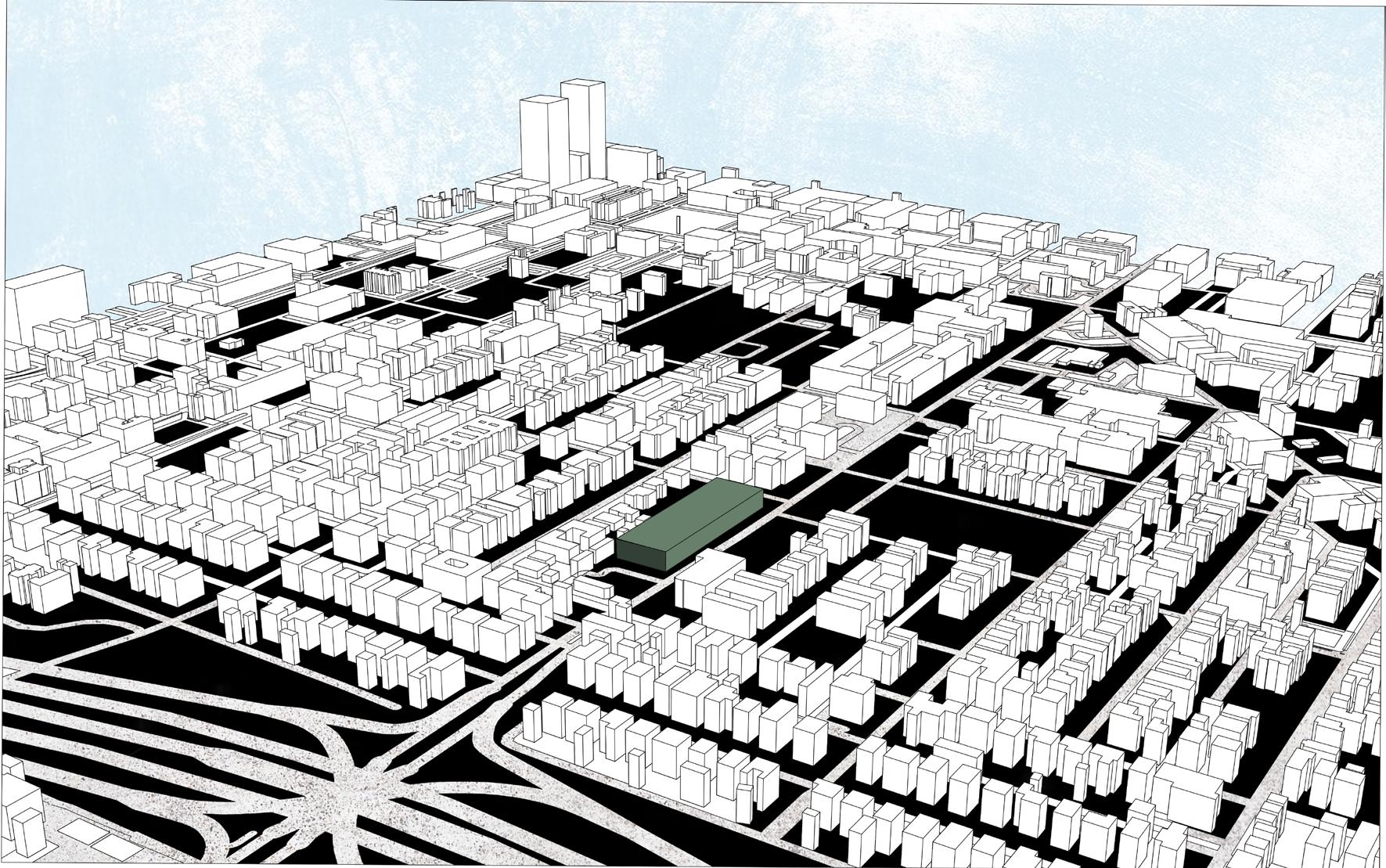 NORTH FACADE SECTION PERSPECTIVE DRAWING