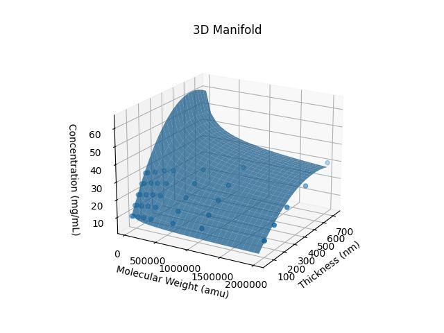 Previous study by Wang et al. used a machinelearningmodeltocreatea3Dmanifold relating molecular weight (MW), solution concentration,andfilmthickness[2].