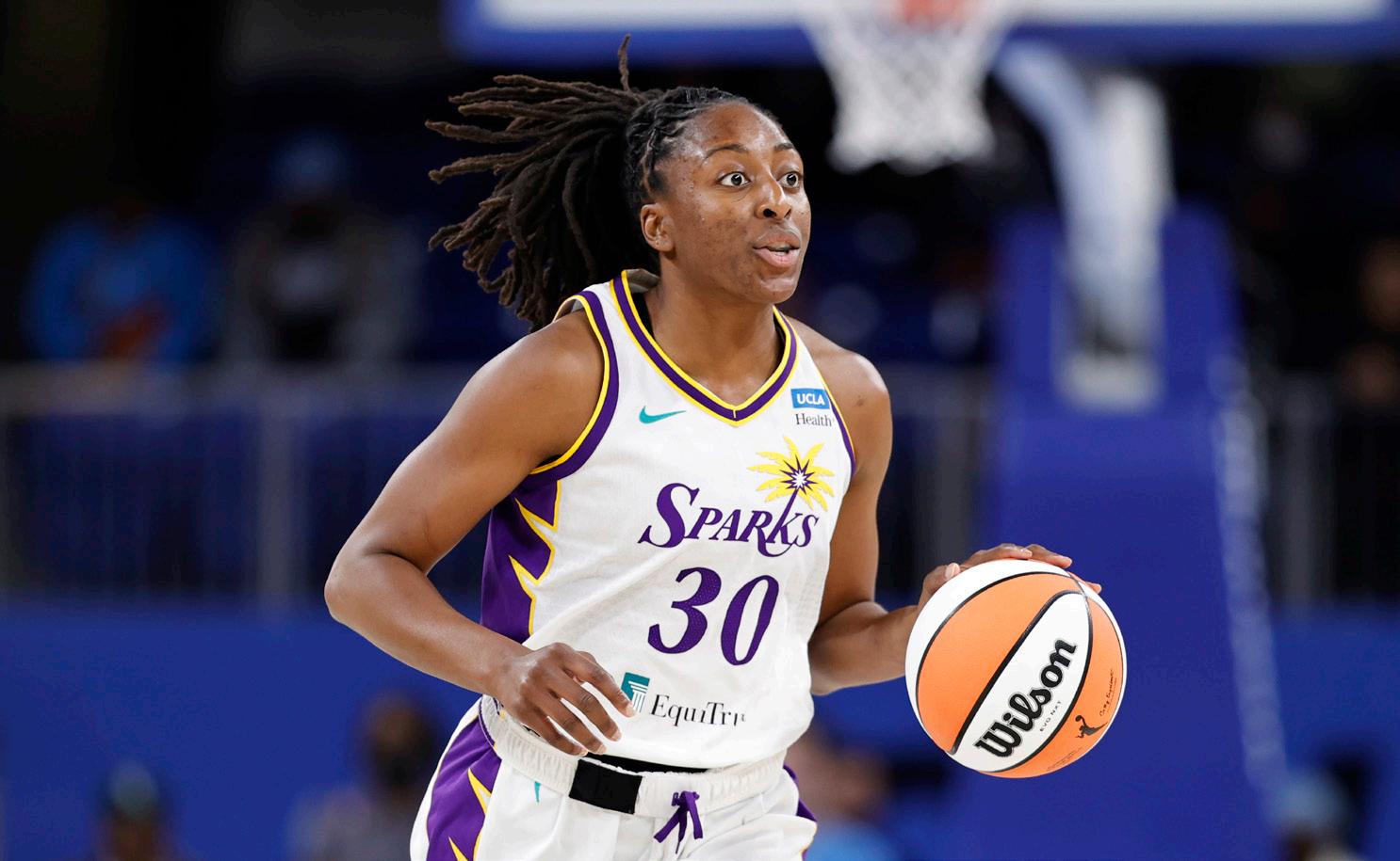 WNBPA President and nine-time WNBA All-Star NnekaOgwumike. (AP Photo/Kamil Krzaczynski)