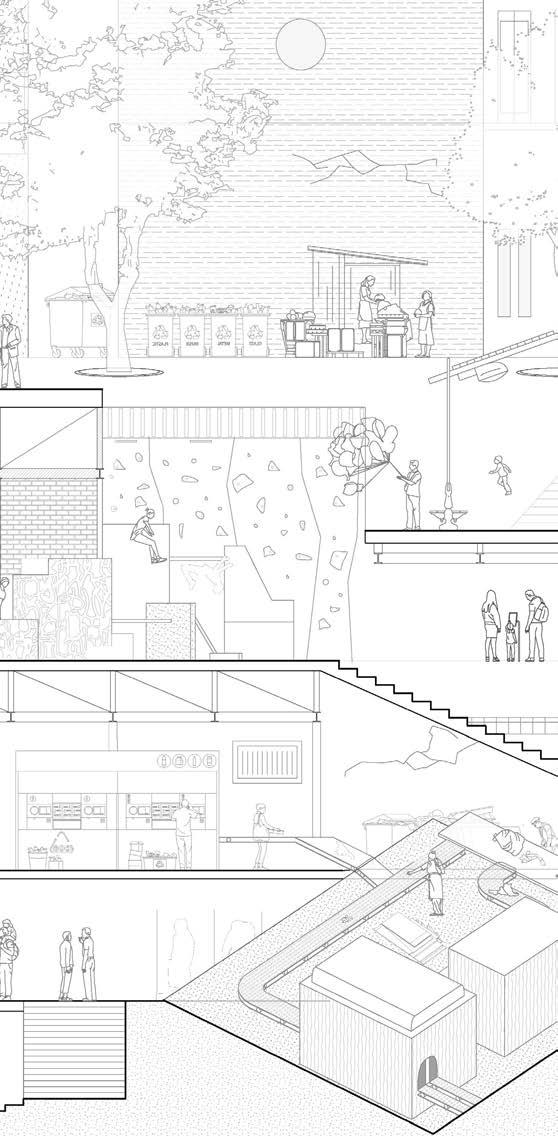 park. Central to the project are localized waste and sewage treatment facilities, strategically integrated as community nodes. These installations develop a resilient and self-sufficient model for managing public infrastructure, inviting urban engagement, and fostering a sense of collective ownership of the city.