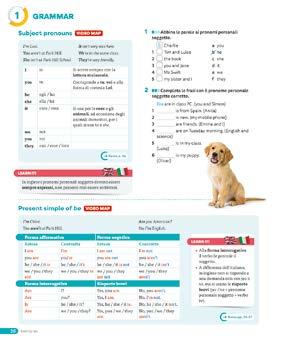 Nelle pagine di grammatica troverai tabelle complete, video-animazioni con esempi pratici, esercizi graduati. A fine libro troverai le mappe riepilogative con esercizi di consolidamento, e una ricca sezione di giochi nel GRAMMAR & VOCABULARY FUN