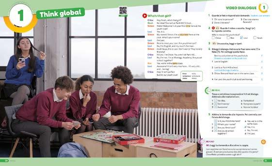 In apertura di unità un video-dialogo accompagnato da una grande foto ti farà entrare nella vita di un gruppo di ragazzi inglesi. Il box BE REAL ti insegnerà tanti modi di dire, mentre a chiusura della sezione troverai una riflessione personale.