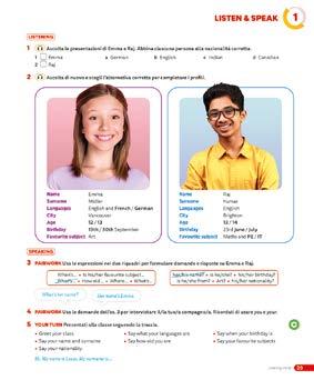 Un’intera pagina dedicata all’abilità di ascolto e alla produzione orale con lavori a coppie e presentazioni alla classe, per metterti alla prova e misurare i tuoi progressi.