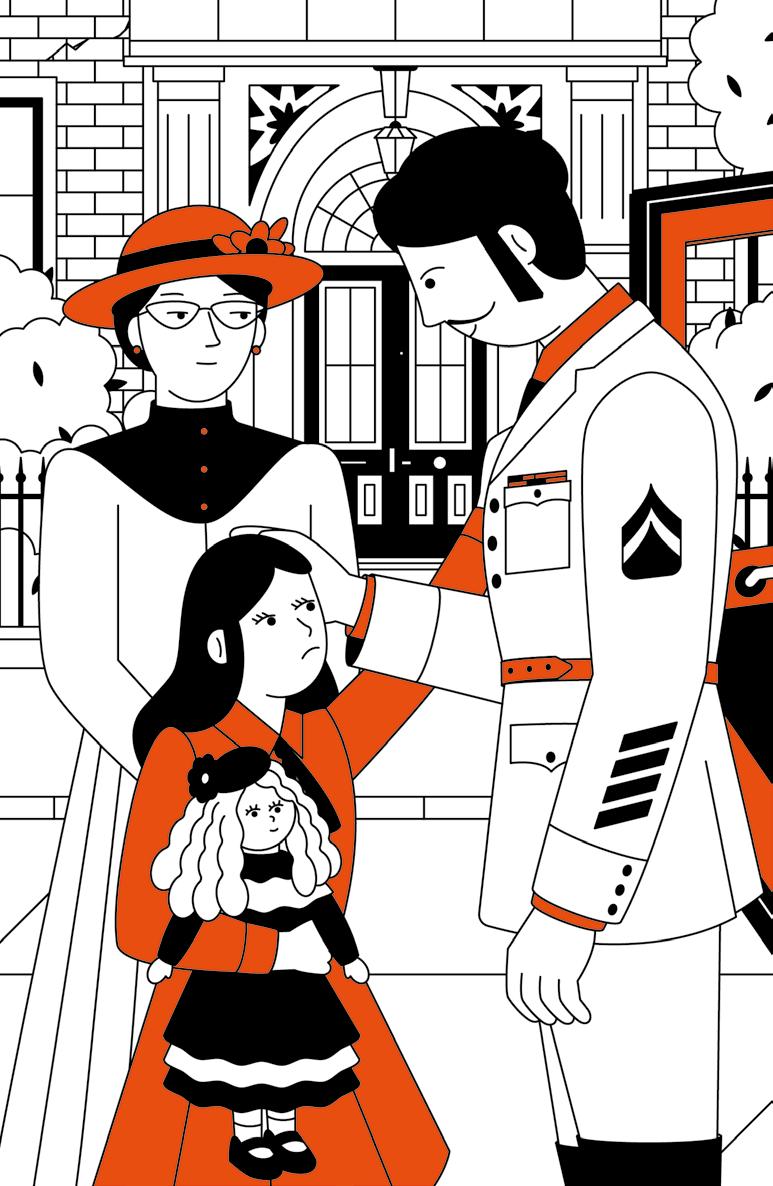 That afternoon, Captain Crewe had to leave for India. When he and Sara arrived at the school, Miss Minchin, with her usual cold smile, was waiting for them. Sara was very sad: she held Emily tightly* in one hand and her father’s jacket with the other. Captain Crewe hugged* and kissed his daughter for the last time.