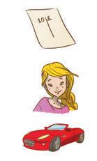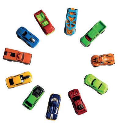 There .......................... eleven cars. There forty-six wheels. There a white car. There .......................... two orange cars. There a black car. There a yellow car. There .......................... a green car.