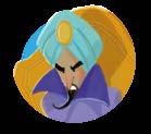 Aladin geht in die Höhle und sucht die Lampe. Der alte Mann ist freundlich, aber eigentlich ist er ein böser Zauberer. Er wartet oben und lacht glücklich.