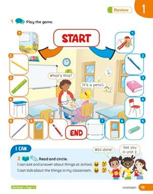 Following the Review lesson, students complete the “I can” box activities. This is their first step toward self-assessment, allowing them to reflect on their progress.