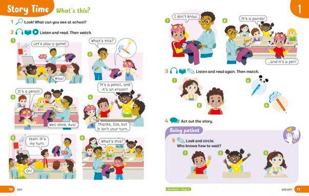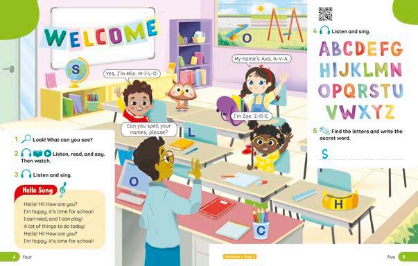 Vocabulary is introduced throughout the unit through bright visuals, listening tasks, and engaging chants that capture the whole class from the start.
