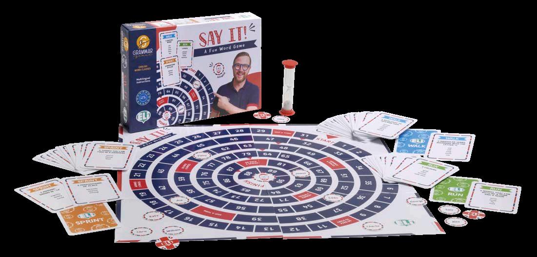 Un gioco da tavolo per apprendere il lessico in modo divertente! Ogni carta presenta un elenco di parole appartenenti alla stessa categoria grammaticale e lessicale. L’obiettivo di Say It è guadagnare punti e raggiungere il traguardo sul tabellone indovinando le parole sulle carte.
