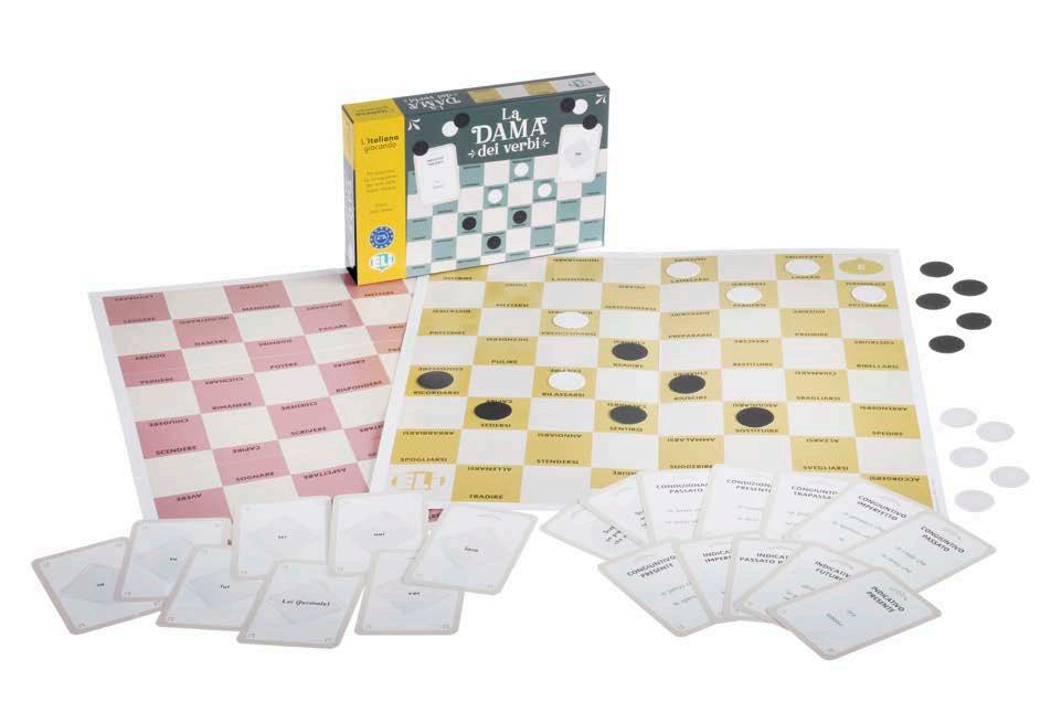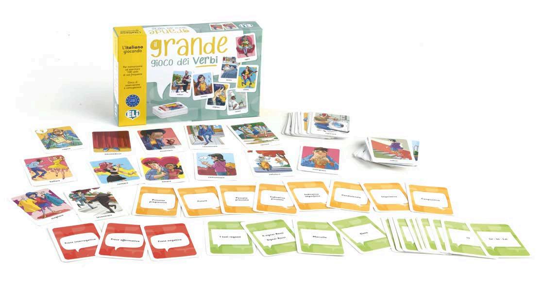 È un gioco da tavolo molto divertente ideato per facilitare l’apprendimento, il rinforzo e l’uso corretto dei tempi verbali.