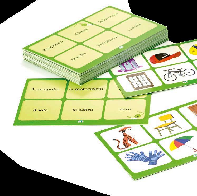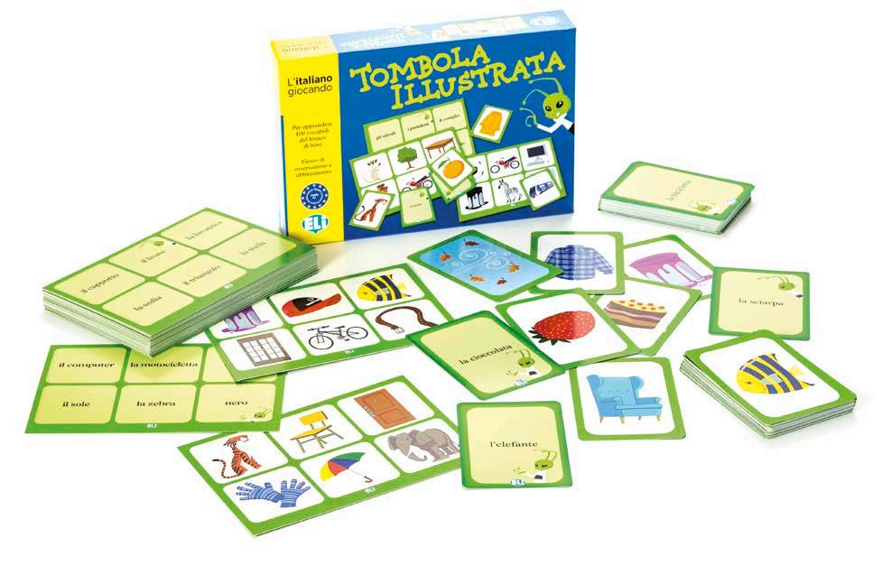 Tombola Lessico e strutture linguistiche animali, colori, forme, cibo, oggetti della casa e della scuola, giocattoli, abbigliamento, natura, tempo atmosferico e mezzi di trasporto