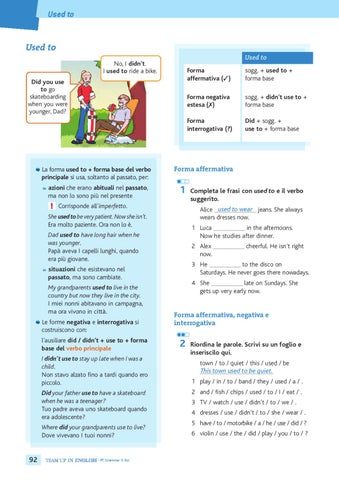 Did your father use to have a skateboard when he was a teenager? Tuo padre aveva uno skateboard quando era adolescente? Where did your grandparents use to live? Dove vivevano I tuoi nonni?