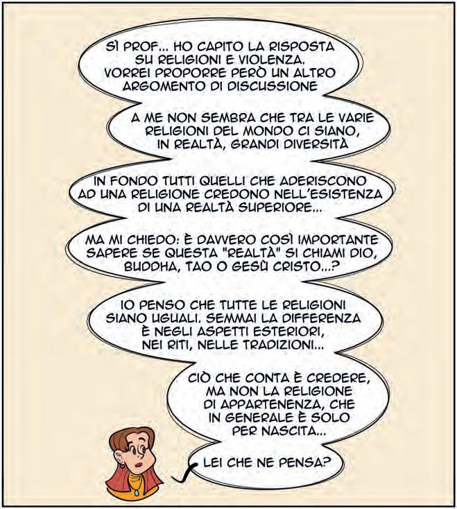 se stai sfogliando questo libro vuol dire che sei nella scuola superiore e hai scelto di fare religione; quindi non hai più bisogno di essere seguita/o e guidata/o passo passo, ma da adolescente hai voglia di crescere in modo autonomo e non ti accontenti più di risposte troppo semplici o scontate su ciò che stai vivendo e sentendo dentro di te. Sicuramente le domande che ti stai ponendo sulla religione non sono poche, e probabilmente molte delle tue idee e dei tuoi comportamenti su questo argomento sono cambiati nel corso del tempo.