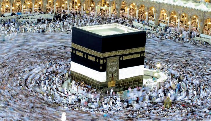 5. Il pellegrinaggio (hajj). Per chi ne ha la possibilità, è prescritto un pellegrinaggio a La Mecca, almeno una volta nella vita. I pellegrini si rivestono di un lungo abito bianco, senza cuciture (che simboleggia l’abolizione di ogni differenza), e compiono poi una serie di riti, tra cui la «deambulazione» attorno alla Ka’ba.