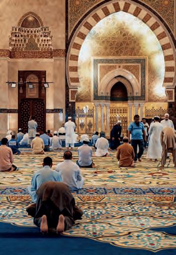 Nell’islam non sono previsti sacramenti e nemmeno una qualche forma di sacerdozio istituzionalizzato; così il centro vitale delle comunità è rappresentato dalla moschea. Letteralmente significa «il luogo dove ci si prostra» ma non è solo un luogo per pregare, ma anche dove si discutono problemi sociali e giuridici e si insegna il Corano. Il principale servizio assolto dalla moschea è la preghiera del venerdì, tra mezzogiorno e le tre pomeridiane, a cui sono chiamati a partecipare gli uomini; per le donne non c'è obbligo. Oltre all’imām che ha il compito di guidare la preghiera e tenere il sermone, altre figure importanti del mondo islamico sono l’Ālim, lo studioso esperto nelle scienze religiose, custode e interprete della tradizione; quella dell’Šayh, “anziano” o “capo”, titolo dato a leader locali o a rispettati studiosi e professori; Muftī: esperto in materia giuridica, autorizzato a emettere un responso (fatwā) basato sulla Legge coranica (šarī`a). Grande importanza assumono nell’islam le città sante, come la Mecca, considerata il centro dell’islam, ma anche Medina, la «città del Profeta» e Gerusalemme -