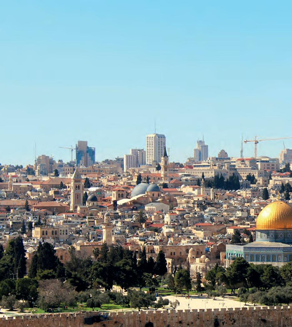 Gerusalemme è oggi la capitale contesa di Israele e Palestina, ma è anche la città considerata santa dai tre monoteismi del Mediterraneo: Ebraismo, Cristianesimo e Islam. Si trova sull’altopiano che separa la costa orientale del mar Mediterraneo dal mar Morto: a est di Tel Aviv, a sud di Ramallah, a ovest di Gerico e a nord di Betlemme. Una città piuttosto periferica nel mondo, ma che nel corso della sua storia è stata – ed è tuttora – al centro di complesse vicende storico-politiche, soprattutto per essere un importante punto di riferimento per le tre grandi religioni monoteiste.